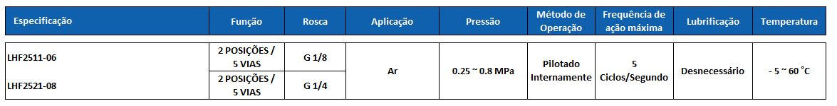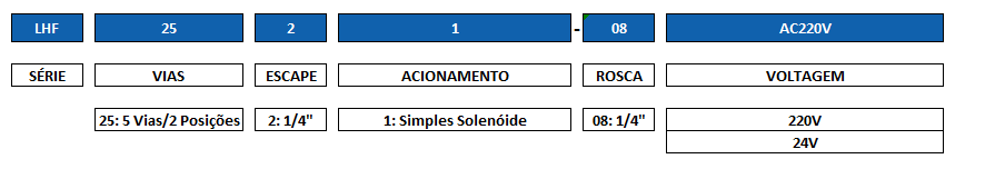 LHF2521-08 Valvula 5/2 Vias Simples Solenoide/Piloto (1/4) – Modelo Tigre